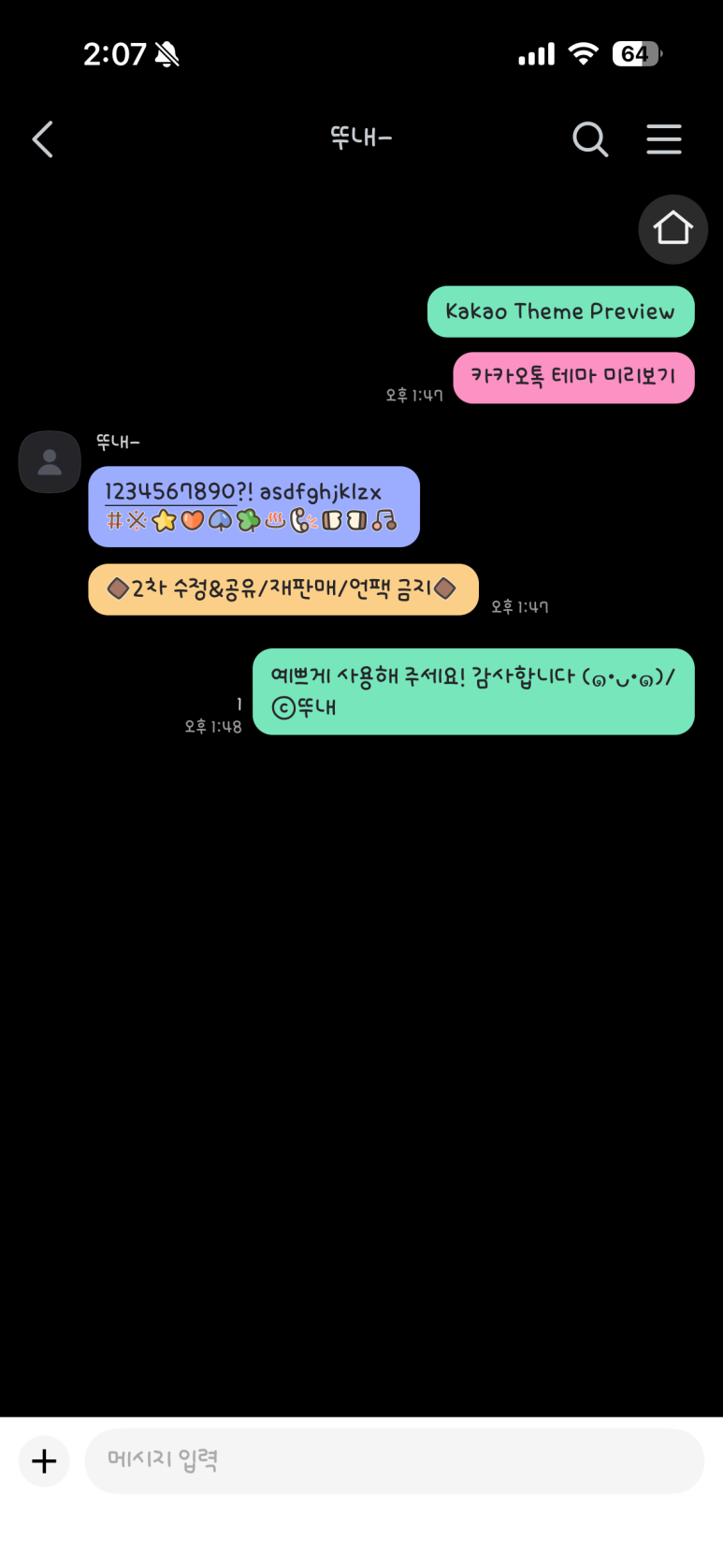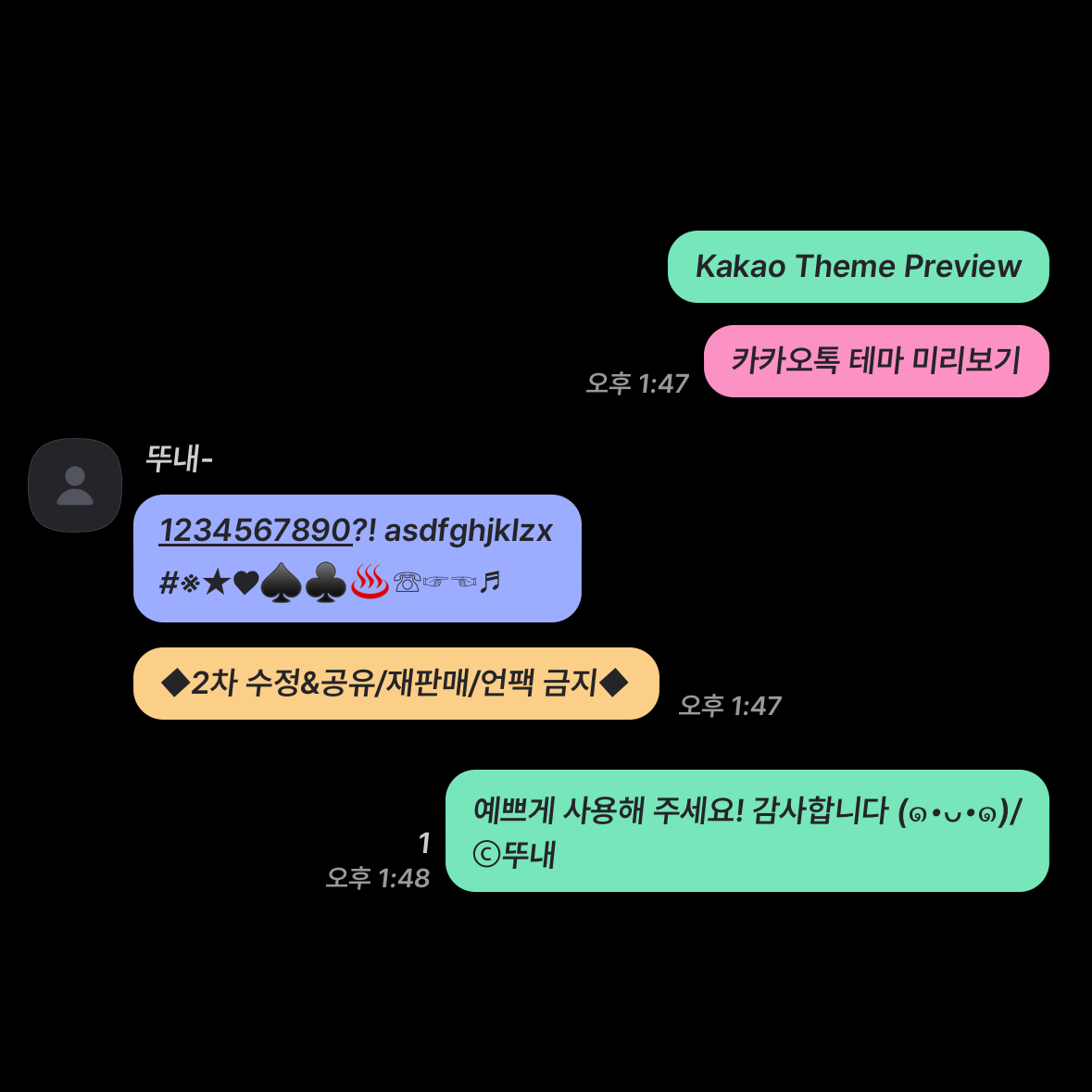 알록달록한 말풍선으로 이루어진 블랙 컬러의 심플한 카톡 테마입니다.